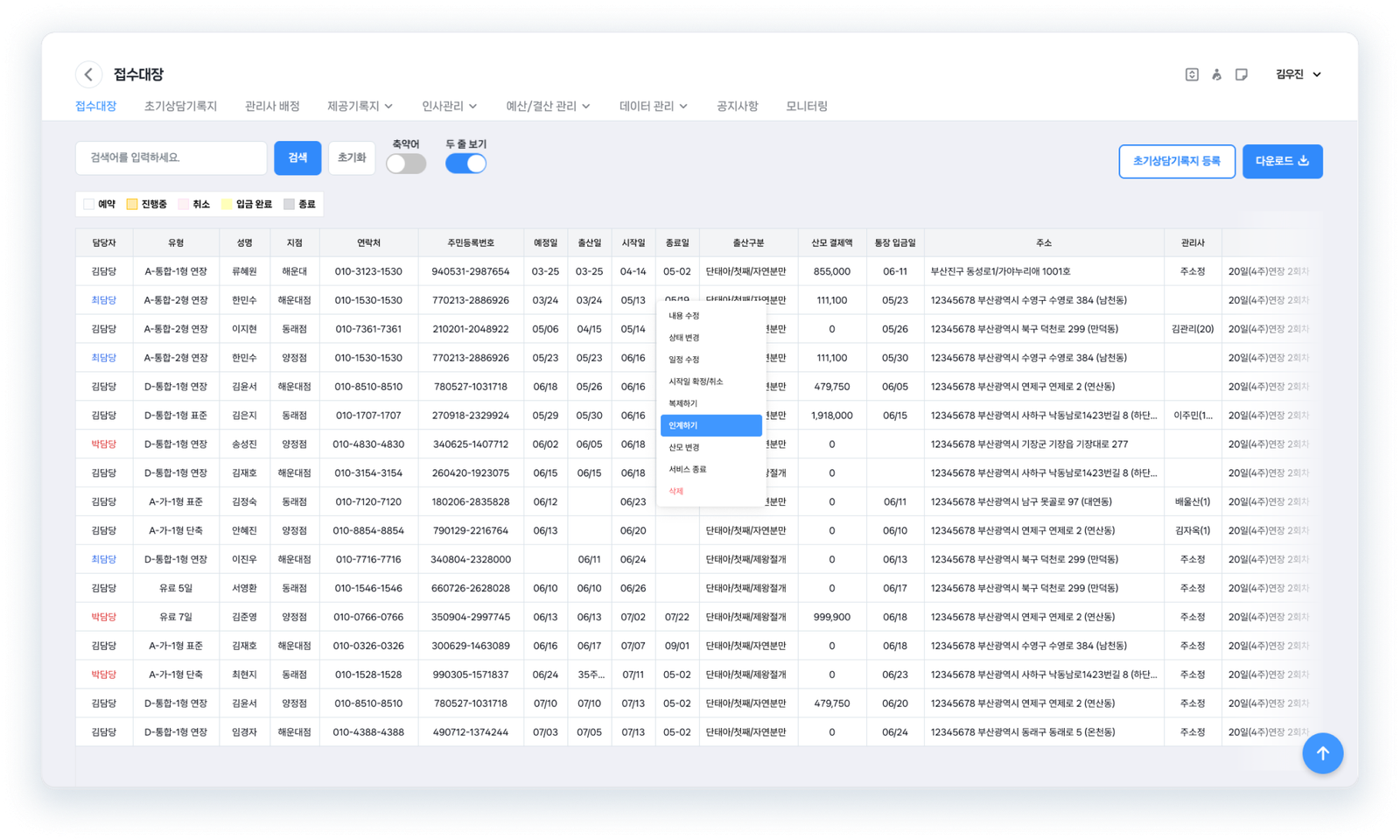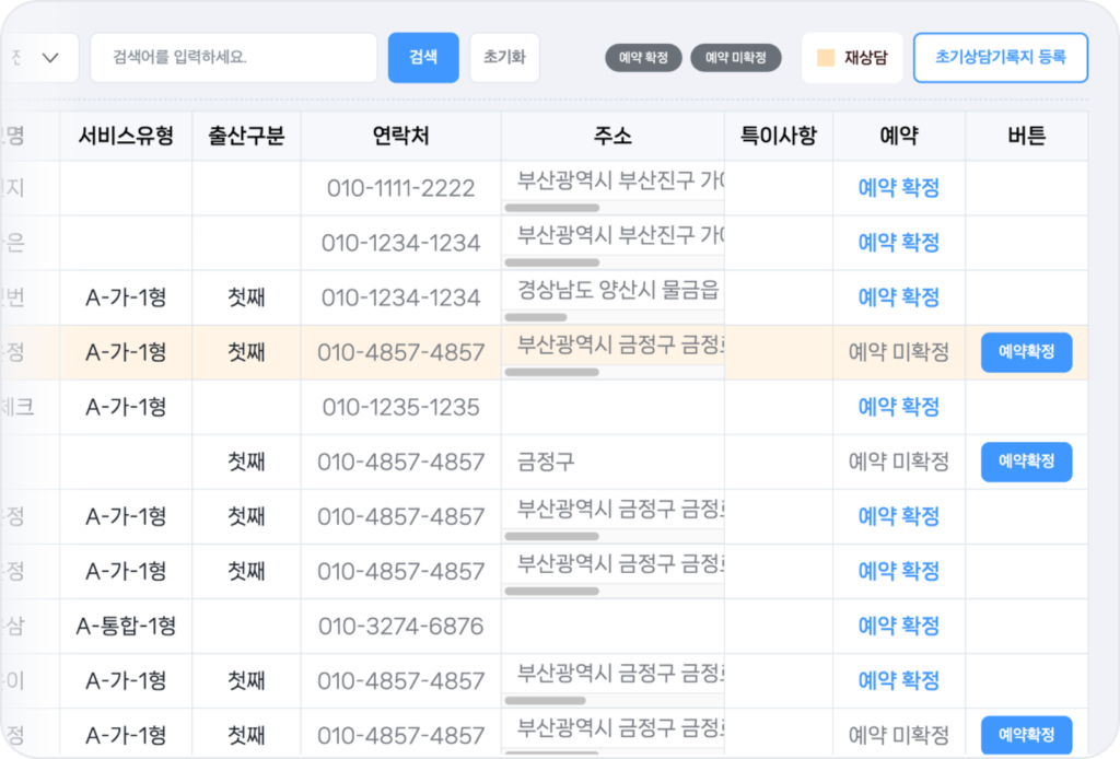 신규 예약에 제공인력을 배정할 경우, 기존 배정 내역을 자동으로 검토해 제공인력 중복을 막습니다. 자동화를 통해 배정 기록으로 책임소재를 분명히 하고, 고객에게 안정적인 서비스를 제공합니다.
